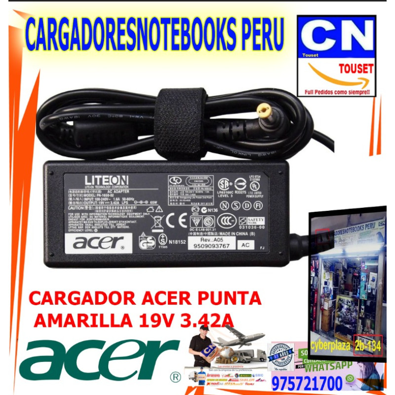 Etiquetas: Cargador Acer Punta Amarilla19v 3.42a 65w