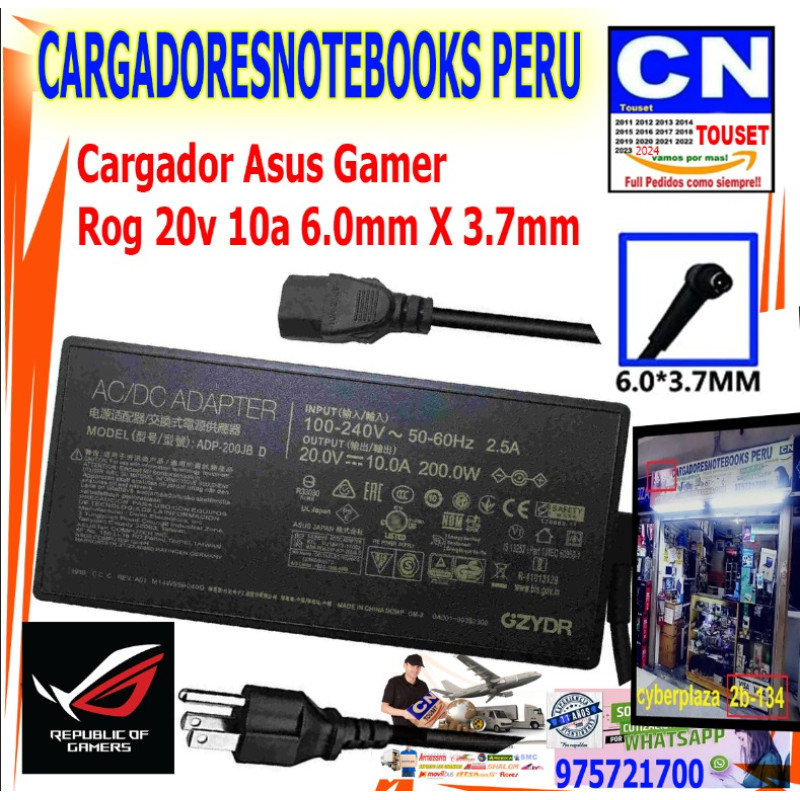 - Código del producto: Cargador Asus 20V. 10A. 200W. 6.0X 3.7mm. ADP200JB