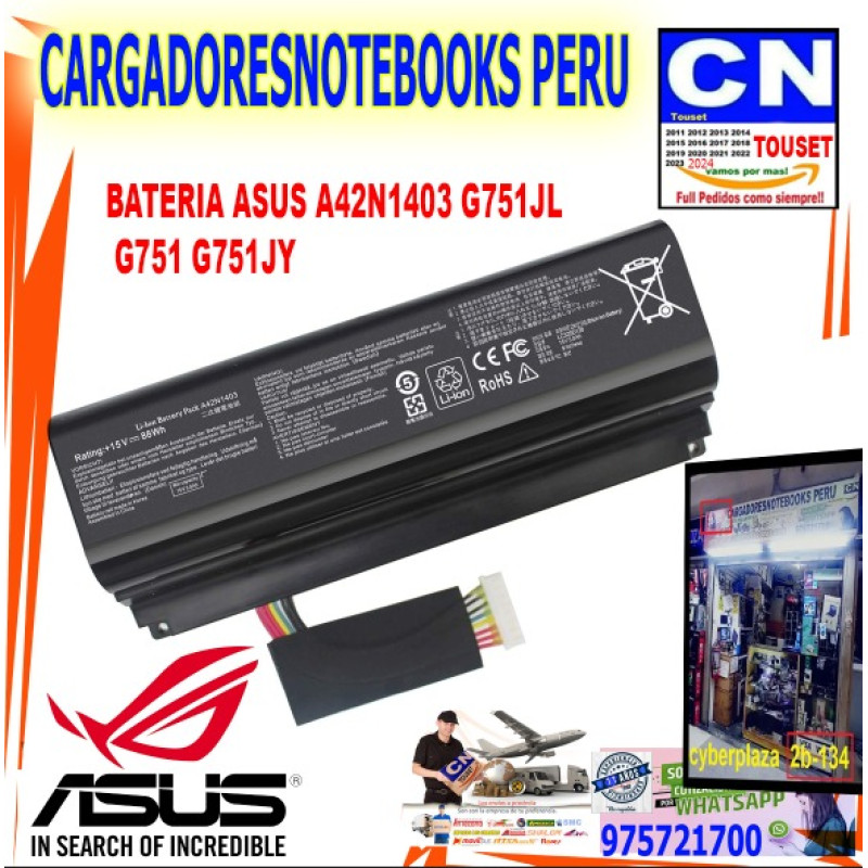 - Código del producto: BATERIA ASUS A42N1403 88Wh 15V 8 CELDAS G751 G751J INT