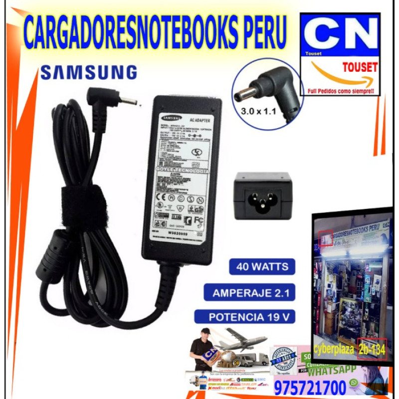 Etiquetas: CARGADOR samsung 19v 2.1a punta fina 40w
